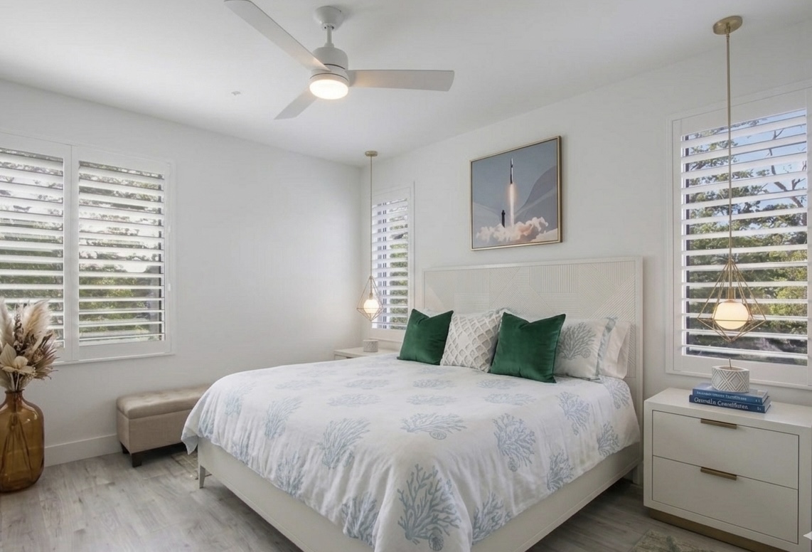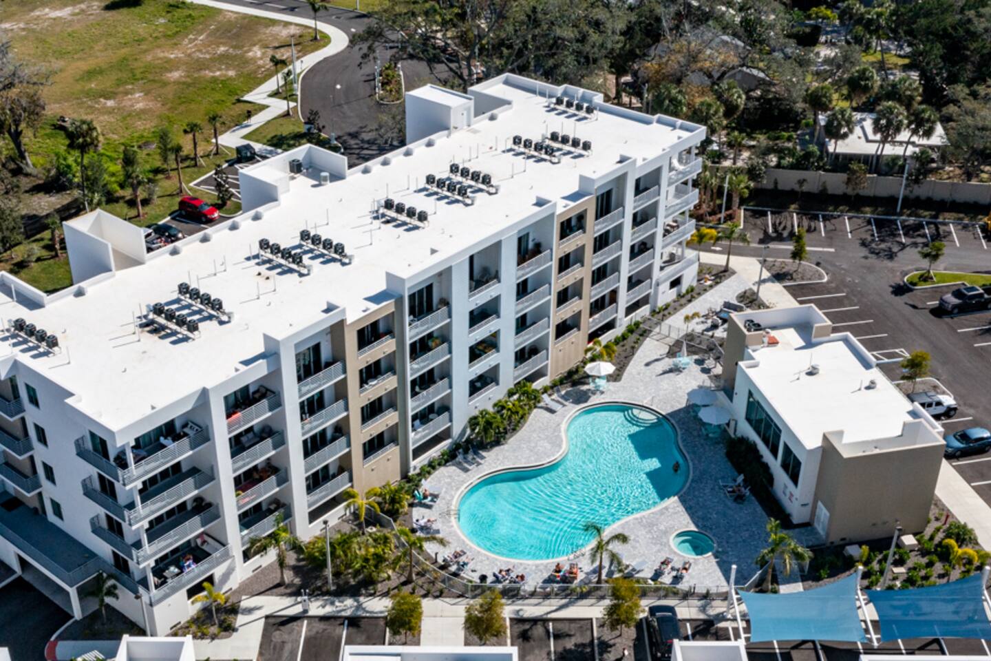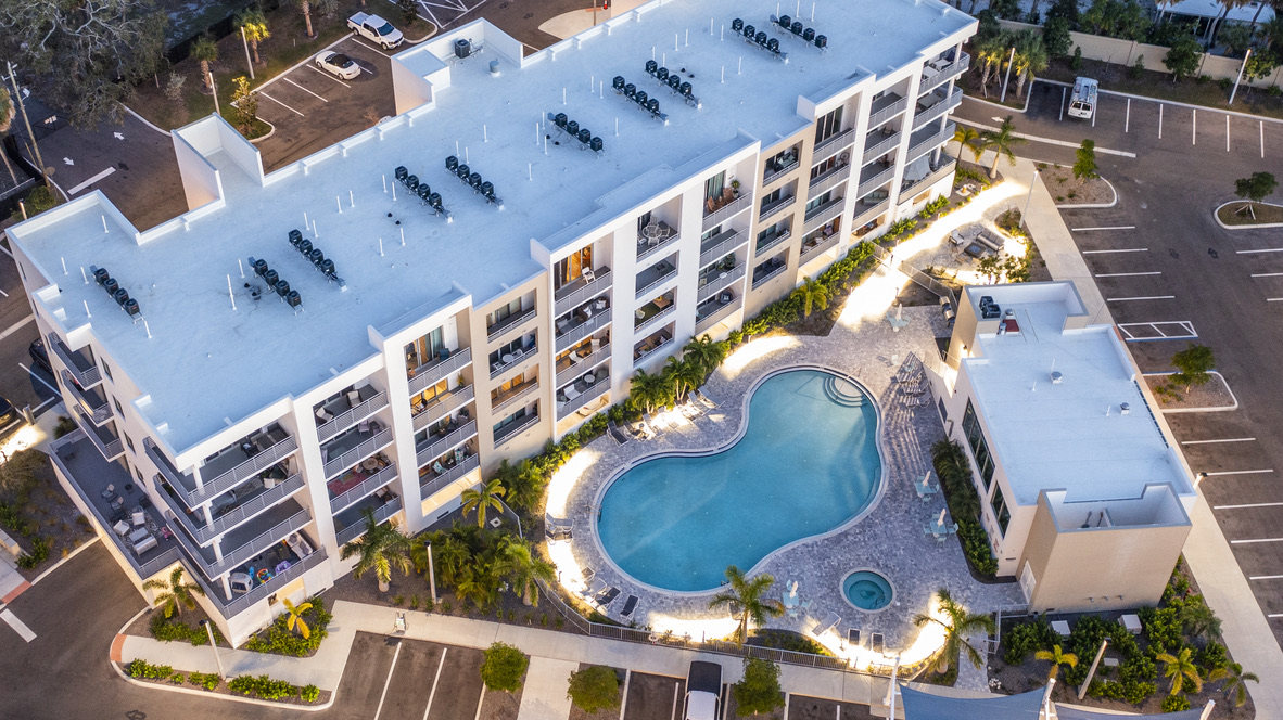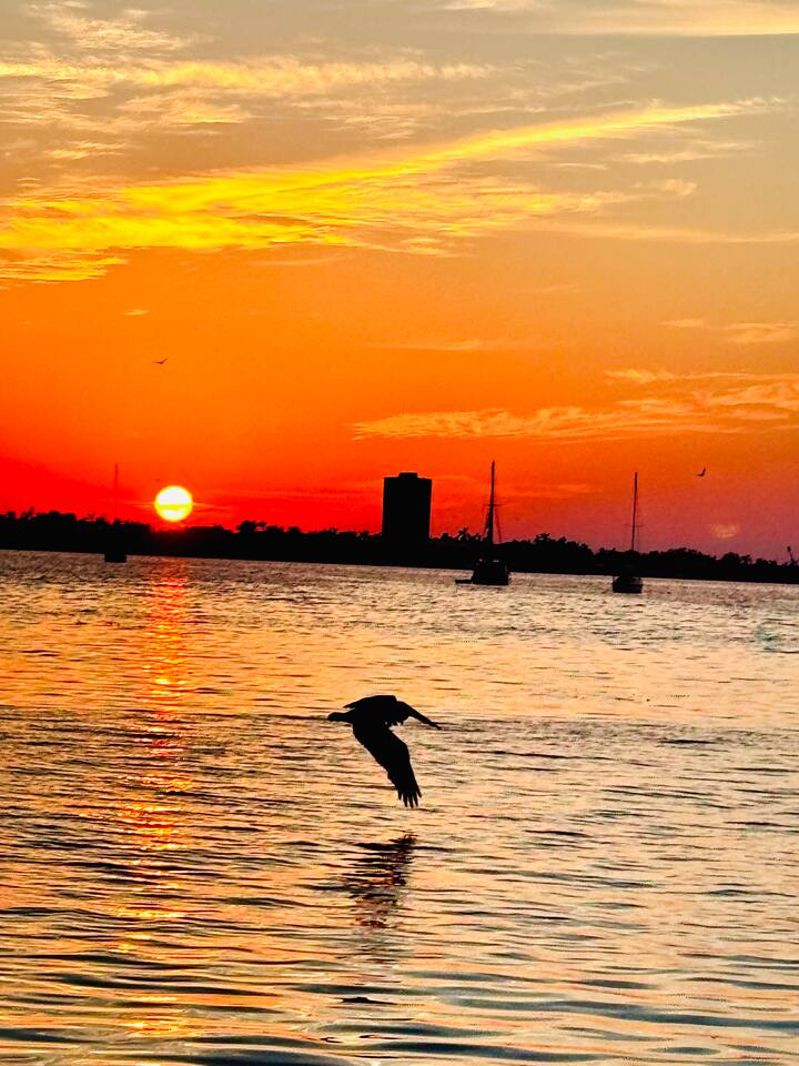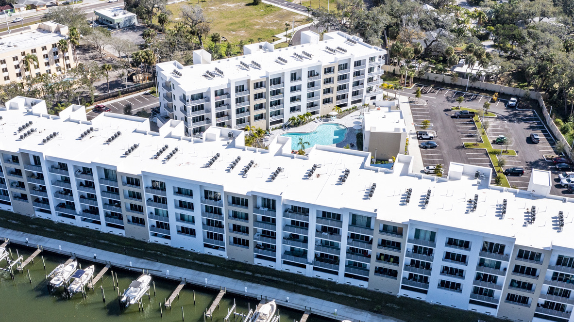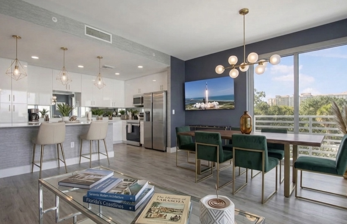 ·5th floor top floor · The Strand, Sarasota 1,359 sq ft · 2 bed · 2 bath · sleeps 4 Panoramic Sarasota Bay views · private balcony Gourmet kitchen · 2 bathrooms · in-unit washer/dryer Resort pool & spa · marina · kayak launch · gym Covered parking · EV charging · gated community 1 mile to downtown · 20 min to Siesta Key #1 beach 5 min to Sarasota Airport On-site host · reply within 1 hour 7 night minimum · no parties · no pets